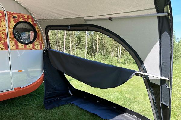 Sinnvolles Zubehör: Für die linke Hälfte des Sonnendachs können Sie eine Front erwerben, die mit einem Reißverschluss verbunden wird. Sie deckt etwa die Hälfte der Front ab.