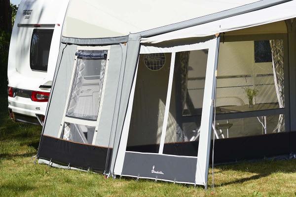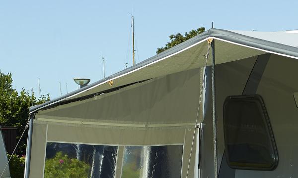 Wenn Sie die Seitenwand und das Eclipse Sonnendach direkt am Wohnwagen (ohne Vorzelt) verwenden, müssen Sie den Eclipse Adaptor (261000416) zusätzlich erwerben. Dieser sorgt für eine dichte Verbindung zwischen Sonnendach und Wohnwagen.