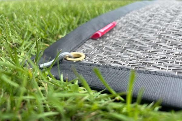 Isabella markisetæppe er udstyret med en enkelt kantsyet finish, der omfatter kantbånd og praktiske pløkhuller i hvert hjørne for at give en pæn afslutning og ekstra holdbarhed.