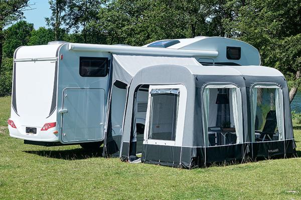 Le tunnel est nécessaire pour assurer une connexion étanche et correcte entre Vita et votre véhicule. Le tunnel réglable est doté de bandes d'étanchéité autocollantes qui créent une connexion étanche et empêchent l'infiltration d'eau. La paroi arrière de l'auvent peut être enroulée sur le côté pour faciliter l'accès au tunnel.