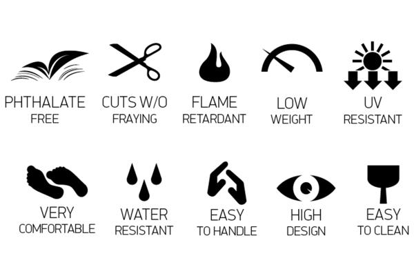 Teppet er UV-bestandig, vann- og brannbestandig, noe som gjør det praktisk og slitesterkt. Det er enkelt å rengjøre og håndtere, samtidig som det er behagelig å gå på.