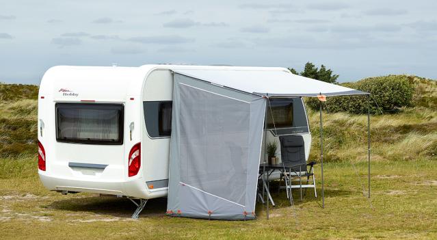 Skugga var som helst, när som helst med soltaket Shadow. Detta soltak kan fästas direkt på husvagnen och ger skugga från solen. Det går snabbt och enkelt att fästa på husvagnen genom att skjuta in vulsten i husvagnsskenan.