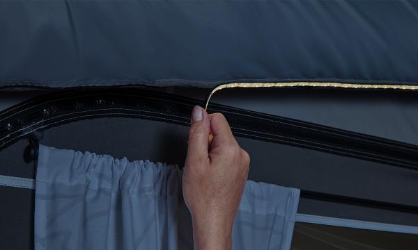 The strips can be mounted with adhesive tape on the Airtubes of your Ventura Air awning or on the frame in your tent or awning. Combine LED light strips with an extension cable or T-lead and adjust the lighting to suit your needs. The light strips can brighten up the entire tent, or they can be dimmed using Isabella’s LED dimmer to create a cosy atmosphere.