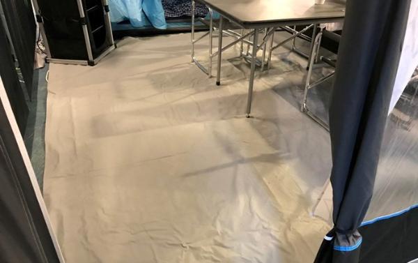 Custom-made PVC floor for Trinus W400. Easy to attach using hook and hoop fasteners.