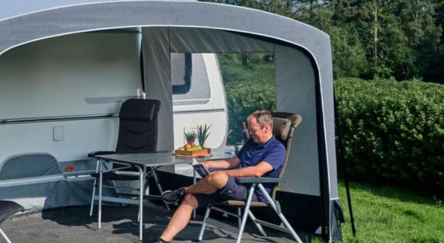 The Ventura AIR Sol is a spacious air sun canopy that provides extra shade and cover in front of your caravan. Thanks to the smart air system where all air tubes are connected, you can quickly inflate it from one valve, minimise the risk of leaks and enjoy a sun canopy that remains stable even when the weather changes. Sol creates a covered area of 250 x 400 cm and helps keep the temperature down in the caravan because the sun doesn't bake in through the windows.