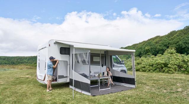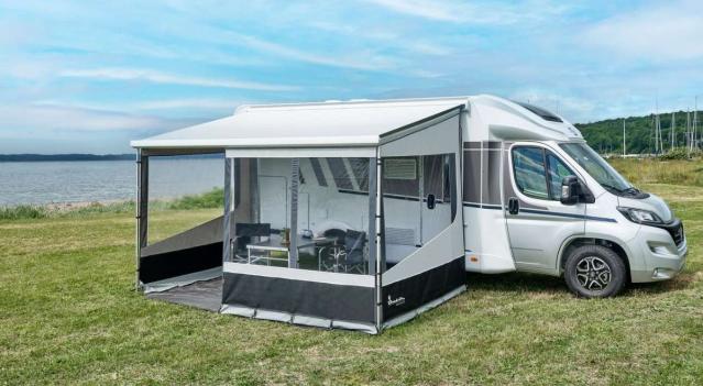 Create a cozy outdoor space in front of your caravan, motorhome or campervan with Wind Side, which can easily be attached to your wind out canopy for extra shelter and comfort